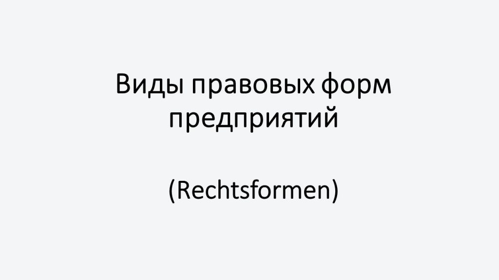Виды правовых форм предприятий (Rechtsformen)